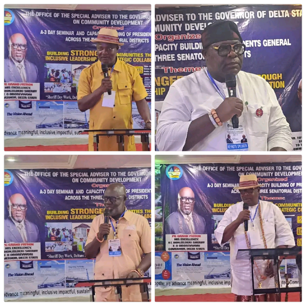 Chairman of Itsekiri Forum of President Generals and the host President General of the Seminar in Delta South, Prince Godwin Oris Okotie, who spoke on behalf of his counterparts from Isoko and Ijaw Ethnic Nationalities, stated this on Thursday during the grand finale of a 3-Day Seminar and Capacity-Building for Presidents-General across Delta South Senatorial District, convened by Office of the Special Adviser to the Governor of Delta State, Rt Hon Sheriff Oborevwori on Community Development.