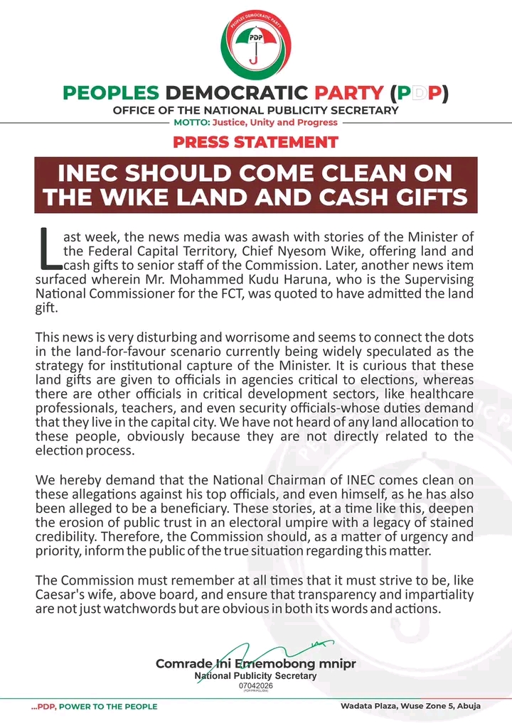 INEC SHOULD COME CLEAN ON THE WIKE LAND AND CASH GIFTS