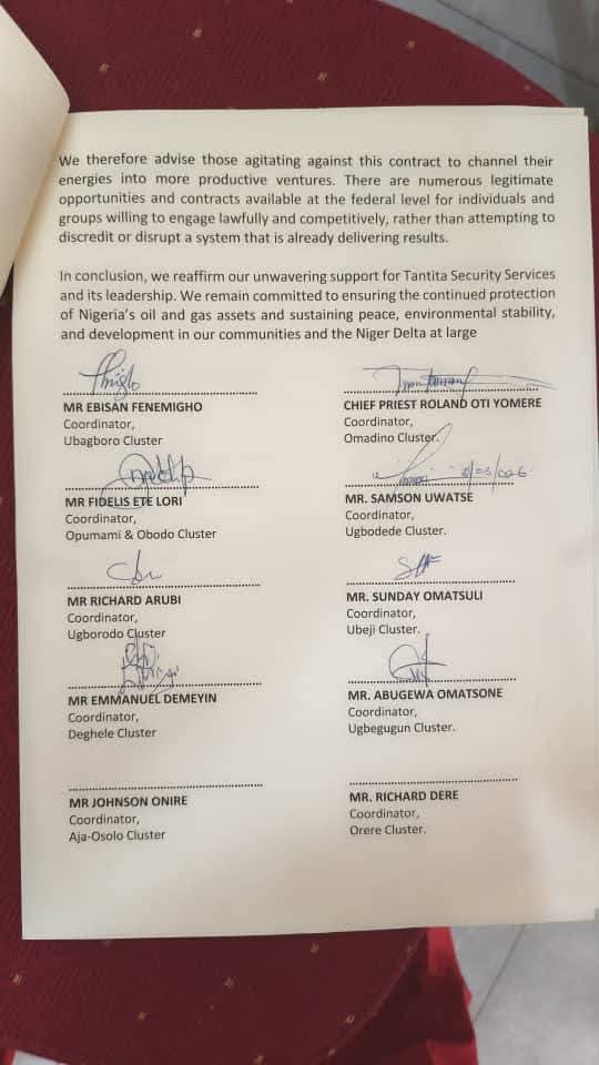 They dismissed individuals calling for the cancellation of the contract as lacking credibility and mandate, insisting that such persons do not represent the interest of Niger Delta communities.