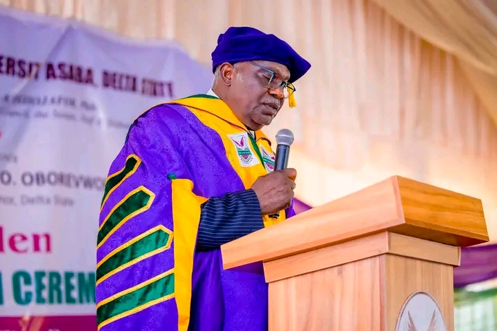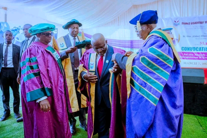 The governor spoke on Saturday, March 7, 2026, during the maiden convocation ceremony of Dennis Osadebay University, Asaba, where 416 pioneer graduates were awarded first degrees across the Faculties of Agriculture, Arts, Behavioural Sciences, Computing, Environmental Sciences, Management Sciences and Sciences.