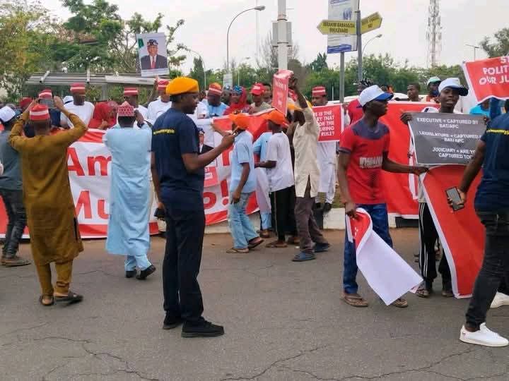 Leaders and members of the ADC converged at the Maitama Roundabout and marched to the INEC headquarters, protesting what they described as the commission’s undue interference in the party’s internal affairs. The demonstration, tagged #OccupyINEC, drew hundreds of supporters despite early morning rain in the Federal Capital Territory.