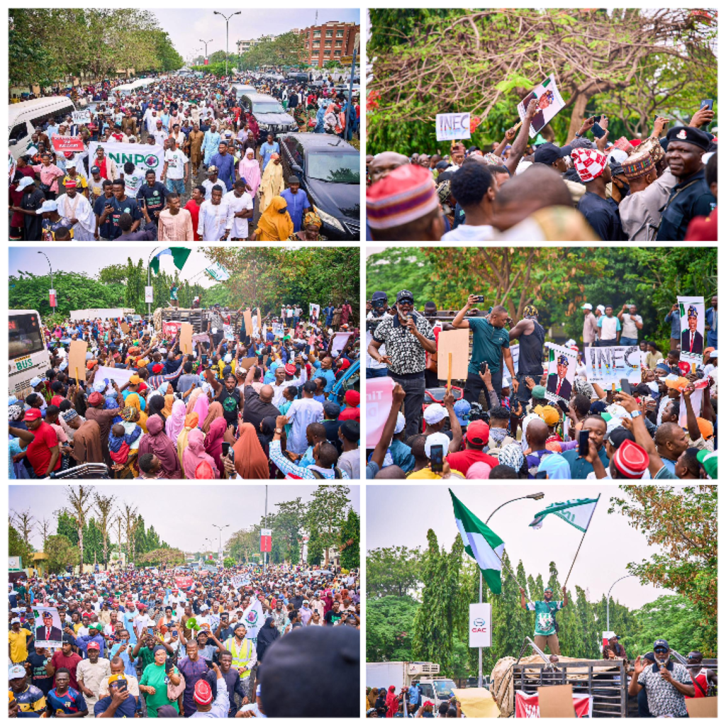 Prominent opposition leaders, including former Vice President Atiku Abubakar, Labour Party’s 2023 presidential candidate Peter Obi, former Kano State Governor Rabiu Musa Kwankwaso, and others, on Wednesday, April 8, 2026, joined a large-scale protest by the African Democratic Congress (ADC) in Abuja against decisions by the Independent National Electoral Commission (INEC)